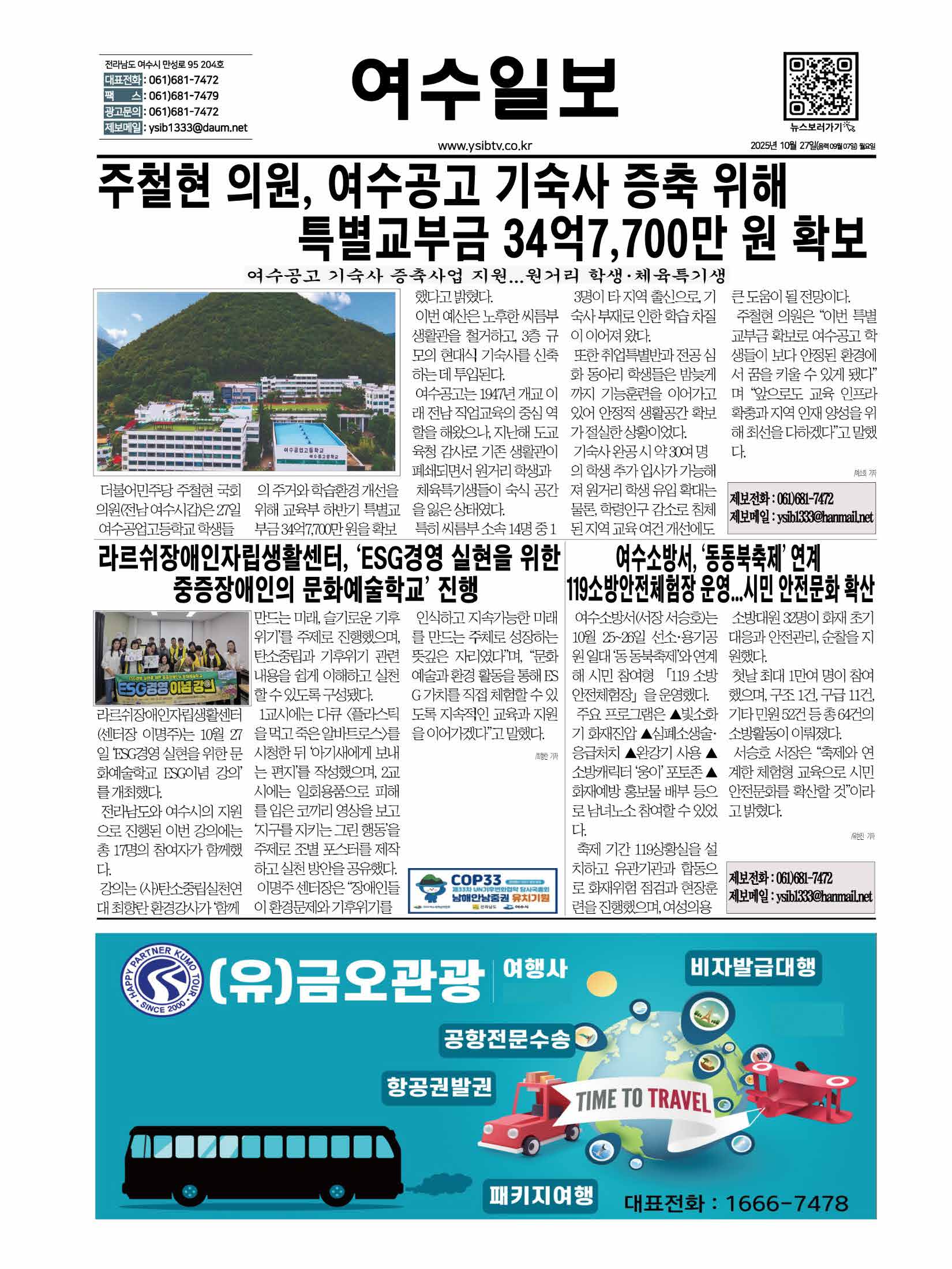 | 주철현 의원, 여수공고 기숙사 증축 위해 특별교부금 34억7,700만 원 확보 (0) | 2025.10.27 |