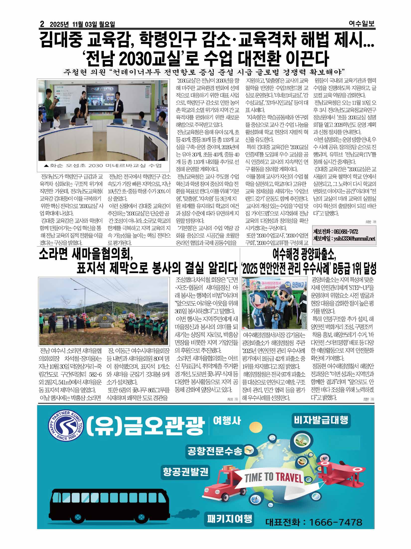 | 김대중 교육감, 학령인구 감소·교육격차 해법 제시… ‘전남 2030교실’로 수업 대전환 이끈다 (1) | 2025.11.03 |
