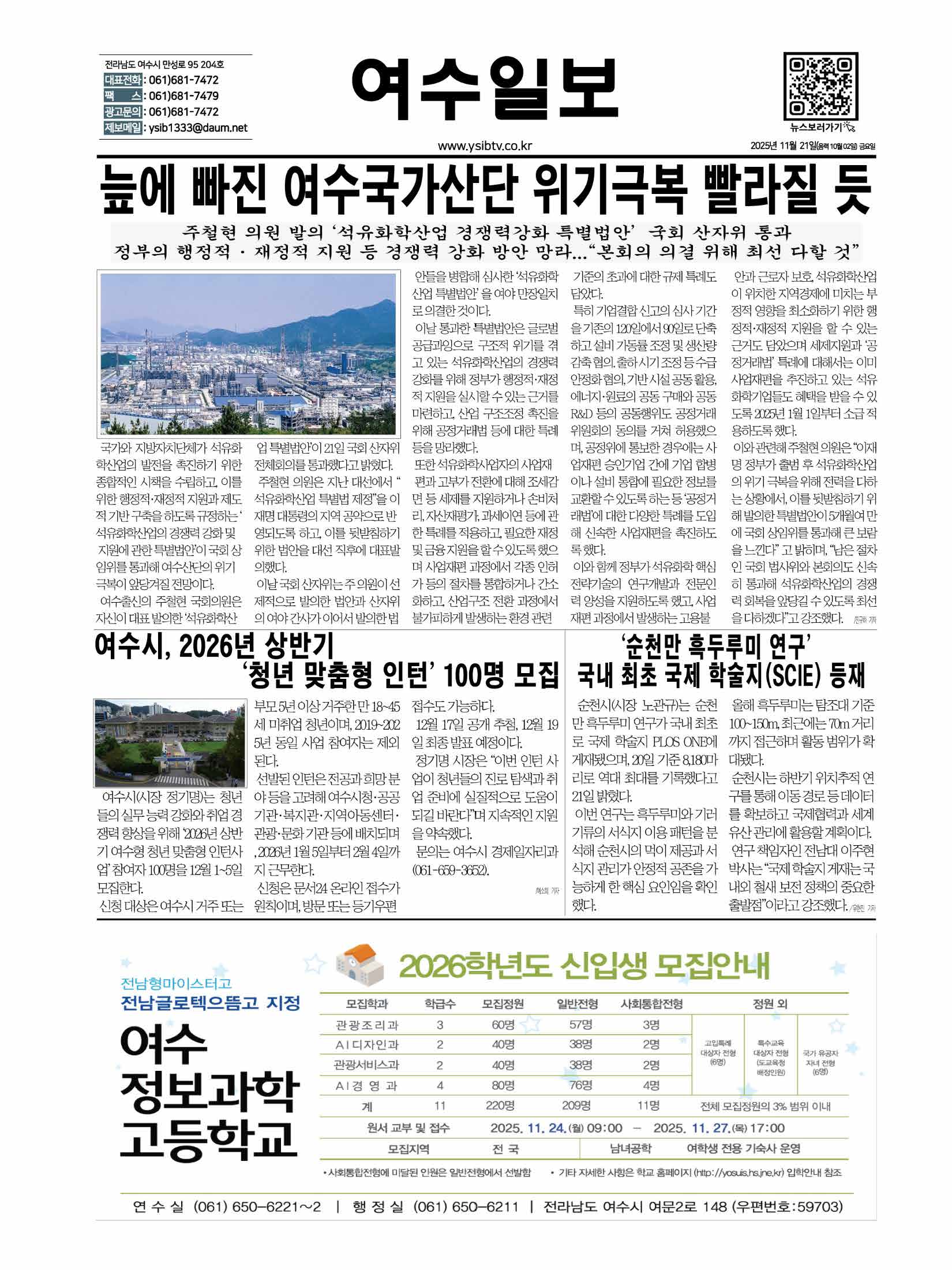 | 여수시, 2026년 상반기 ‘청년 맞춤형 인턴’ 100명 모집 (0) | 2025.11.21 |