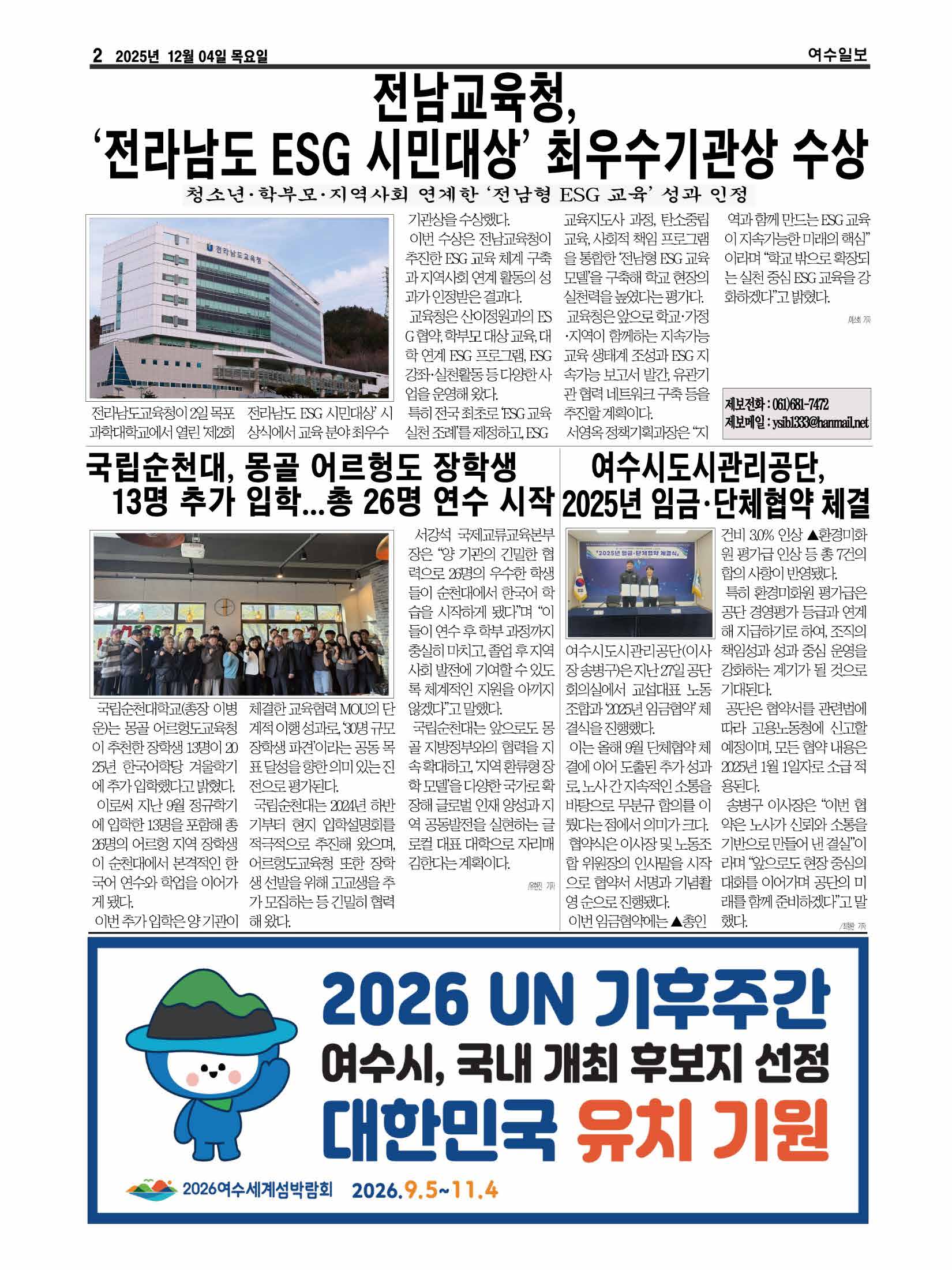 | UN기후주간 대한민국 유치, 여수서 ‘범시민준비위원회’ 출범 (1) | 2025.12.03 |