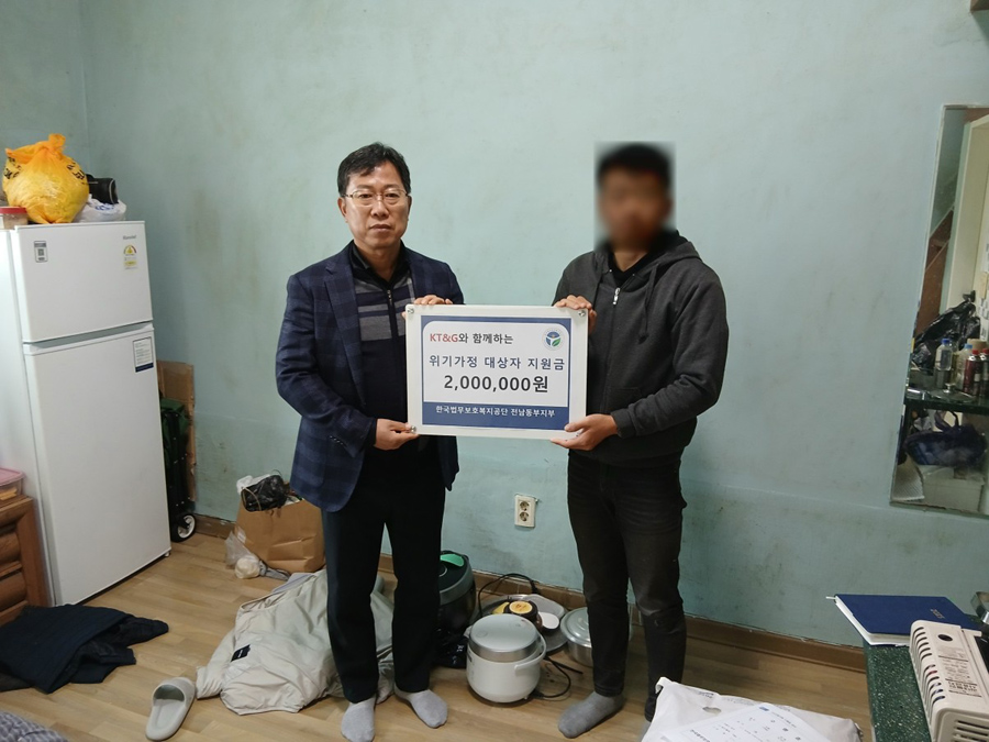 한편, 한국법무보호복지공단 전남동부지부는 KT&G와 협력래 복지 사각지대에 놓인 위기가정을 발굴하고, 실질적인 지원을 지속적으로 이어가고 있다.