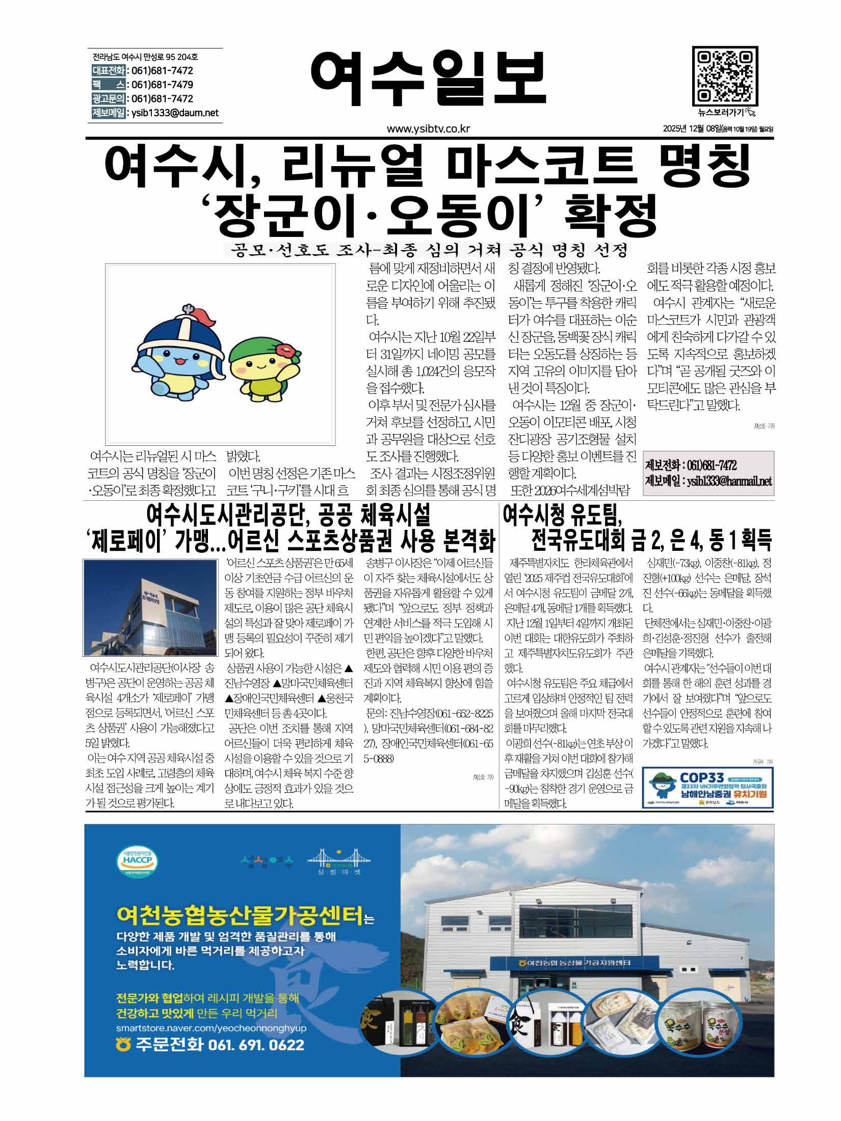 | 여수시, 리뉴얼 마스코트 명칭 ‘장군이·오동이’ 확정 (0) | 2025.12.08 |