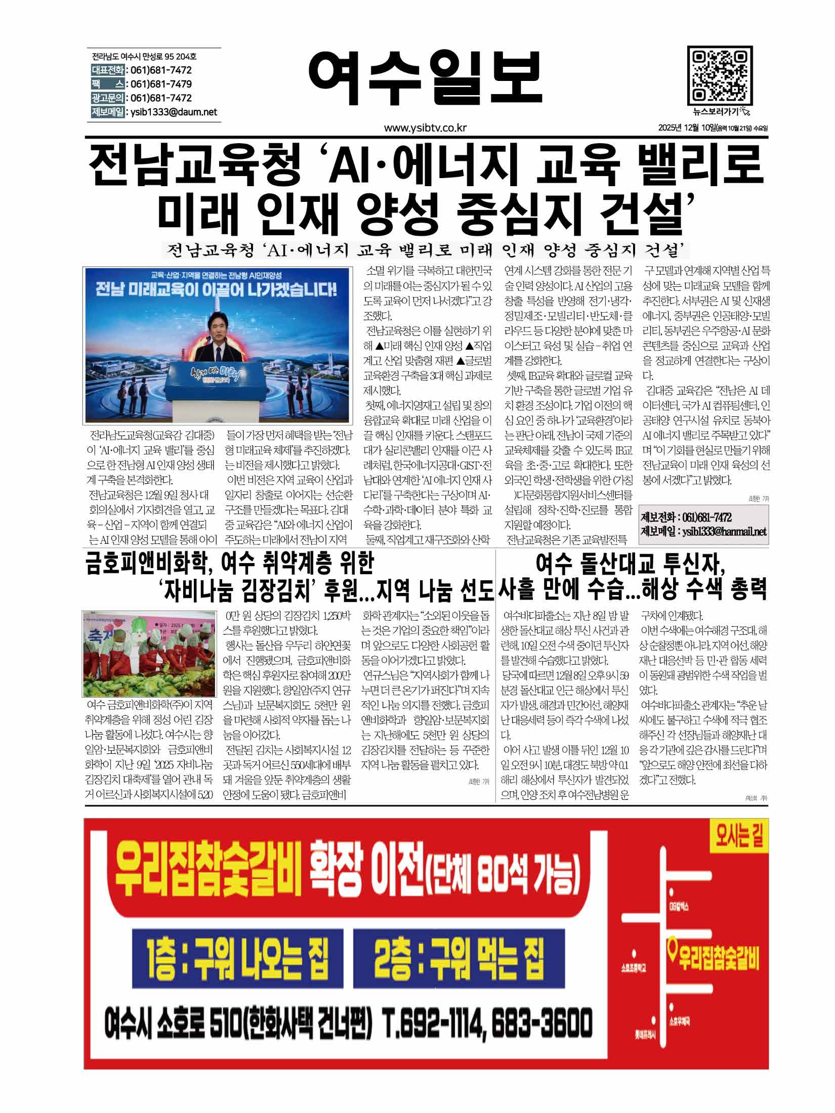 ▷유튜브에서 '여수일보'를 구독 해주세요!!