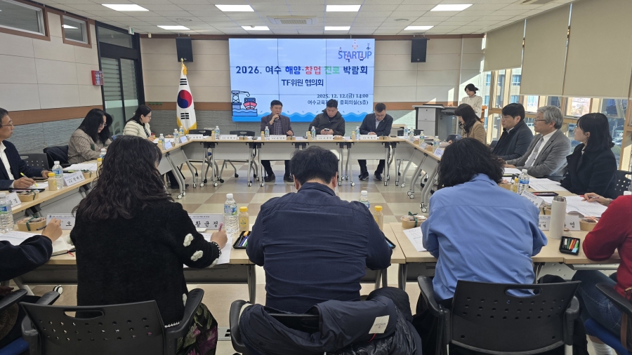 전라남도여수교육지원청은 12월 12일 청사 중회의실에서 ‘2026 여수 해양·창업 진로 박람회’ TF위원회 협의회를 열고, 청소년 해양산업 진로탐색과 지역 기업·기관이 함께하는 실증형 박람회 운영 방안을 논의했다.