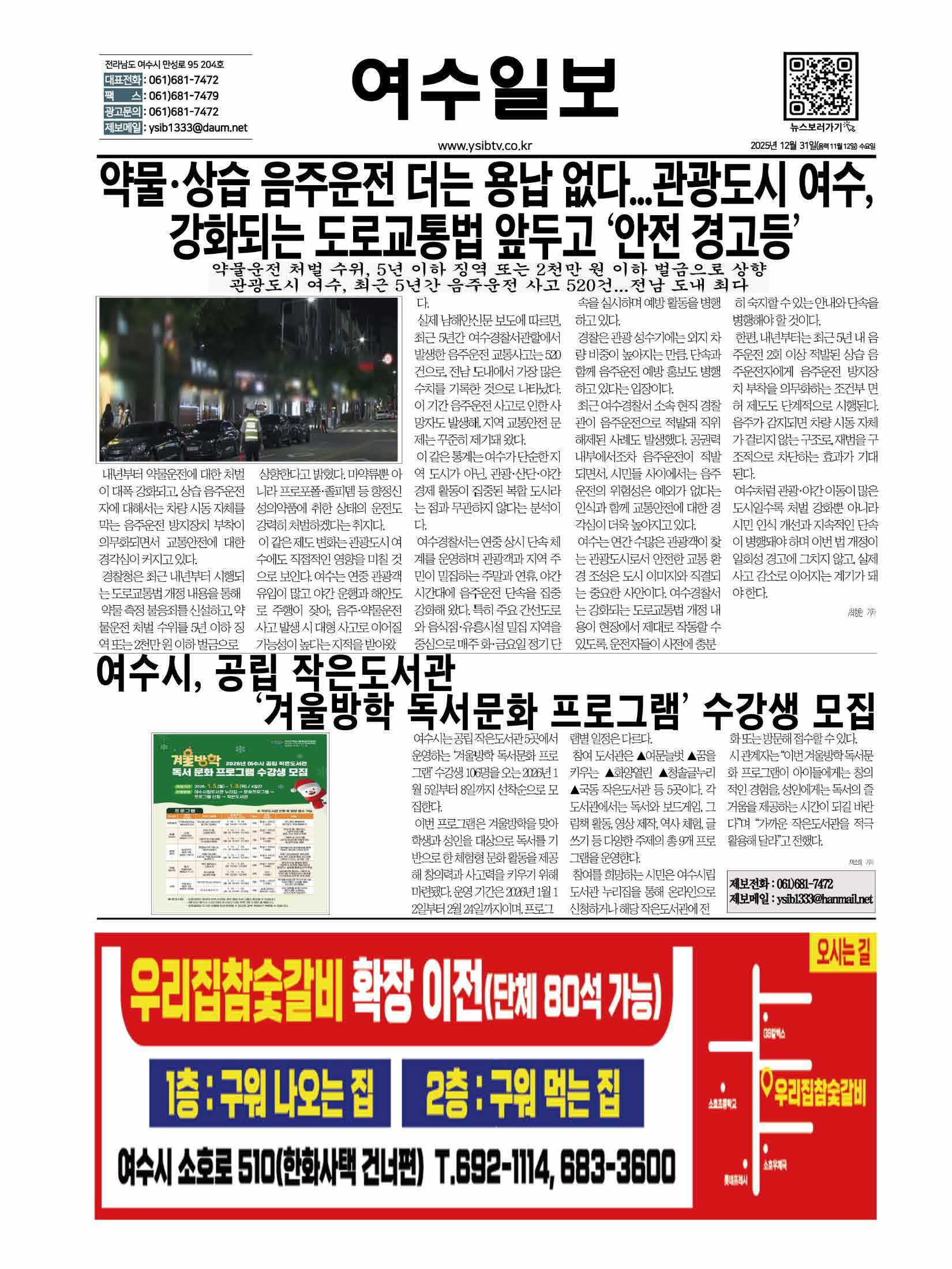 | 여수시, 공립 작은도서관 ‘겨울방학 독서문화 프로그램’ 수강생 모집 (0) | 2025.12.31 |