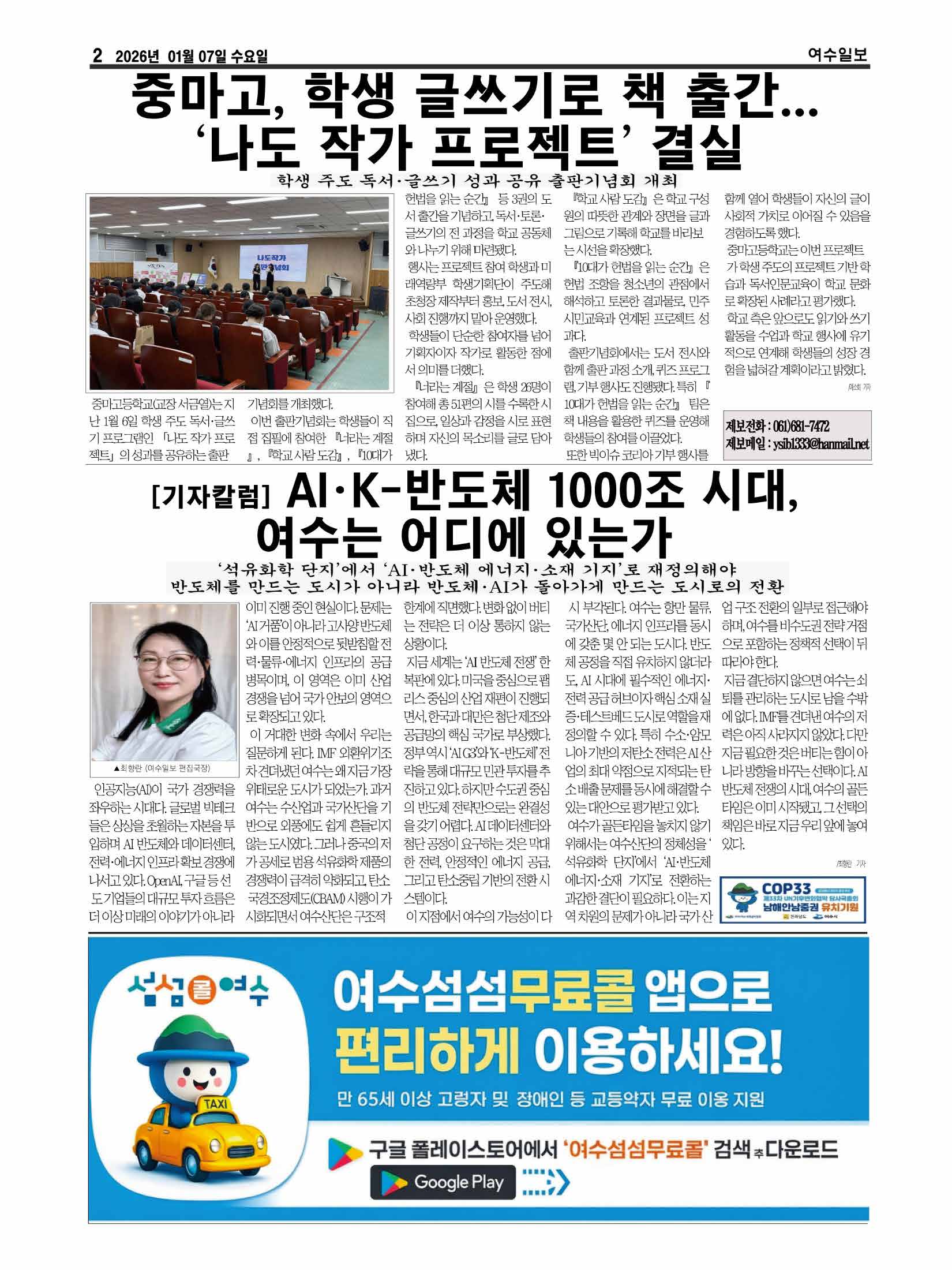 | [기자칼럼]AI·K-반도체 1000조 시대, 여수는 어디에 있는가 (0) | 2026.01.07 |