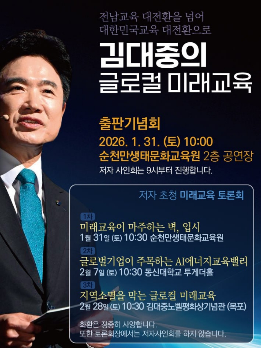 주최 측은 “이번 출판기념회와 토론회는 전남교육의 실천 사례를 넘어, 대한민국 교육이 나아가야 할 새로운 표준을 제시하는 계기가 될 것”이라고 밝혔다.
