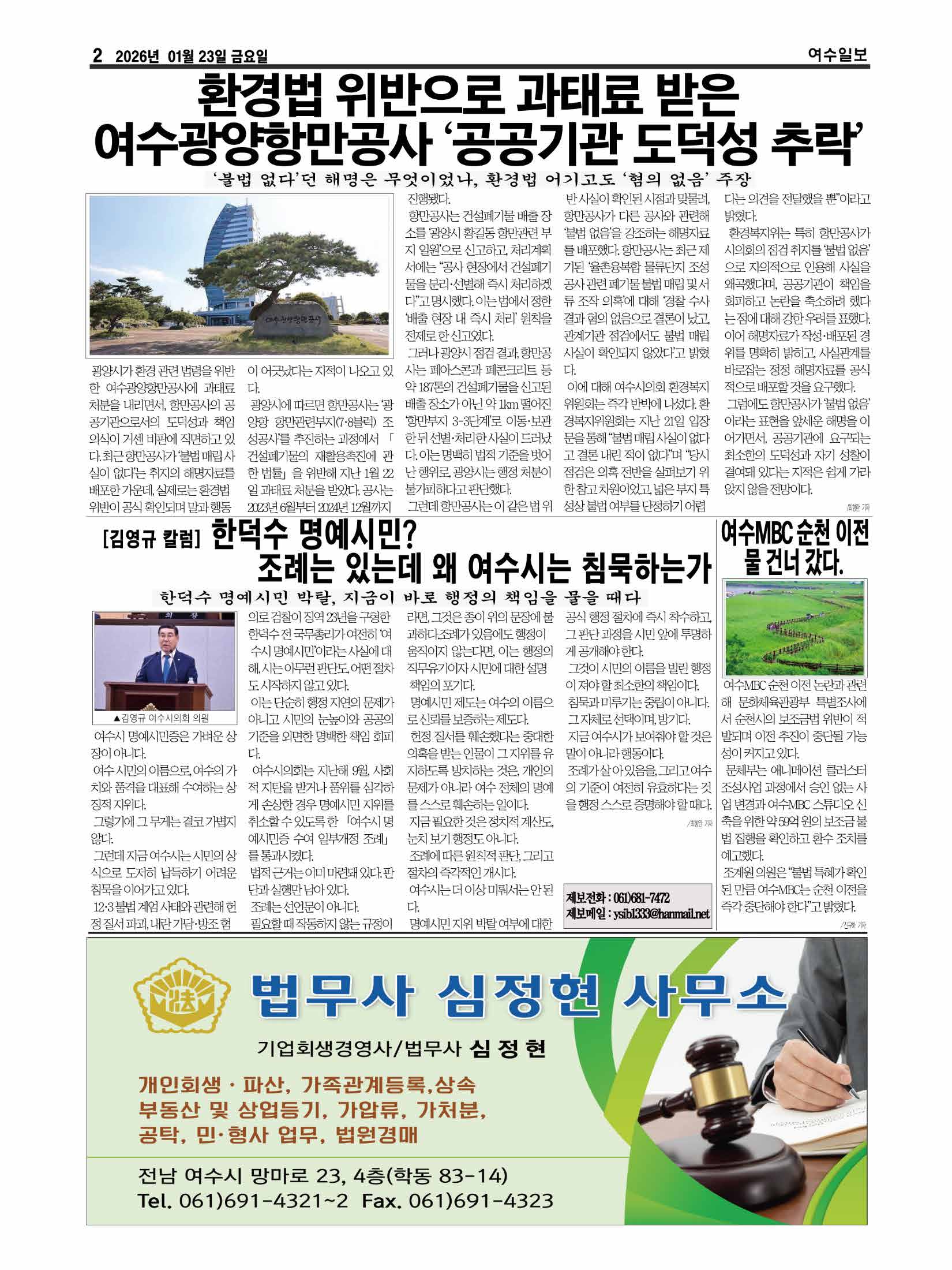 | [김영규 칼럼]한덕수 명예시민? 조례는 있는데 왜 여수시는 침묵하는가 (0) | 2026.01.23 |
