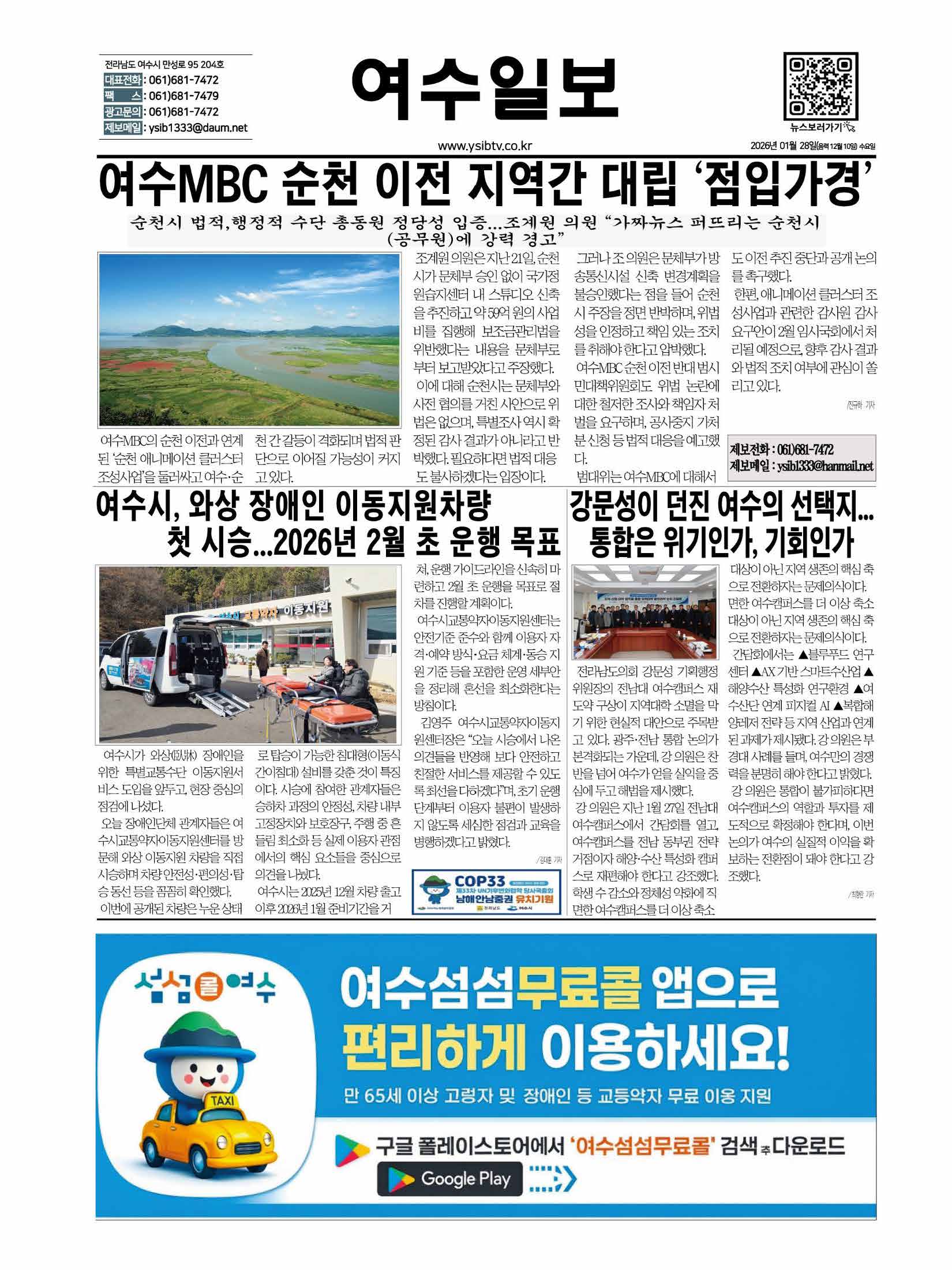 | 여수MBC 순천 이전 지역간 대립 ‘점입가경’ (1) | 2026.01.28 |