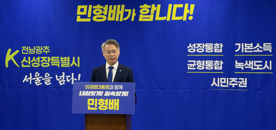 민형배 의원이 2일 광주시의회에서 전남·광주 통합특별시장 출마를 공식 선언했다. ‘서울을 넘는 세계 최고 경쟁력의 신성장 특별시’를 비전으로 제시한 이번 선언은, 광주·전남 전체의 권력 구조와 발전 전략을 다시 설계하겠다는 정치적 메시지로 해석된다.