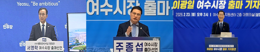 여수시장 선거를 앞두고 서영학 전 대통령비서실 행정관(24일)과 주종섭 전남도의원(24일), 이광일 전라남도의회 제1부의장(23일)이 잇따라 출마를 공식 선언하며 선거전이 본격화됐다.