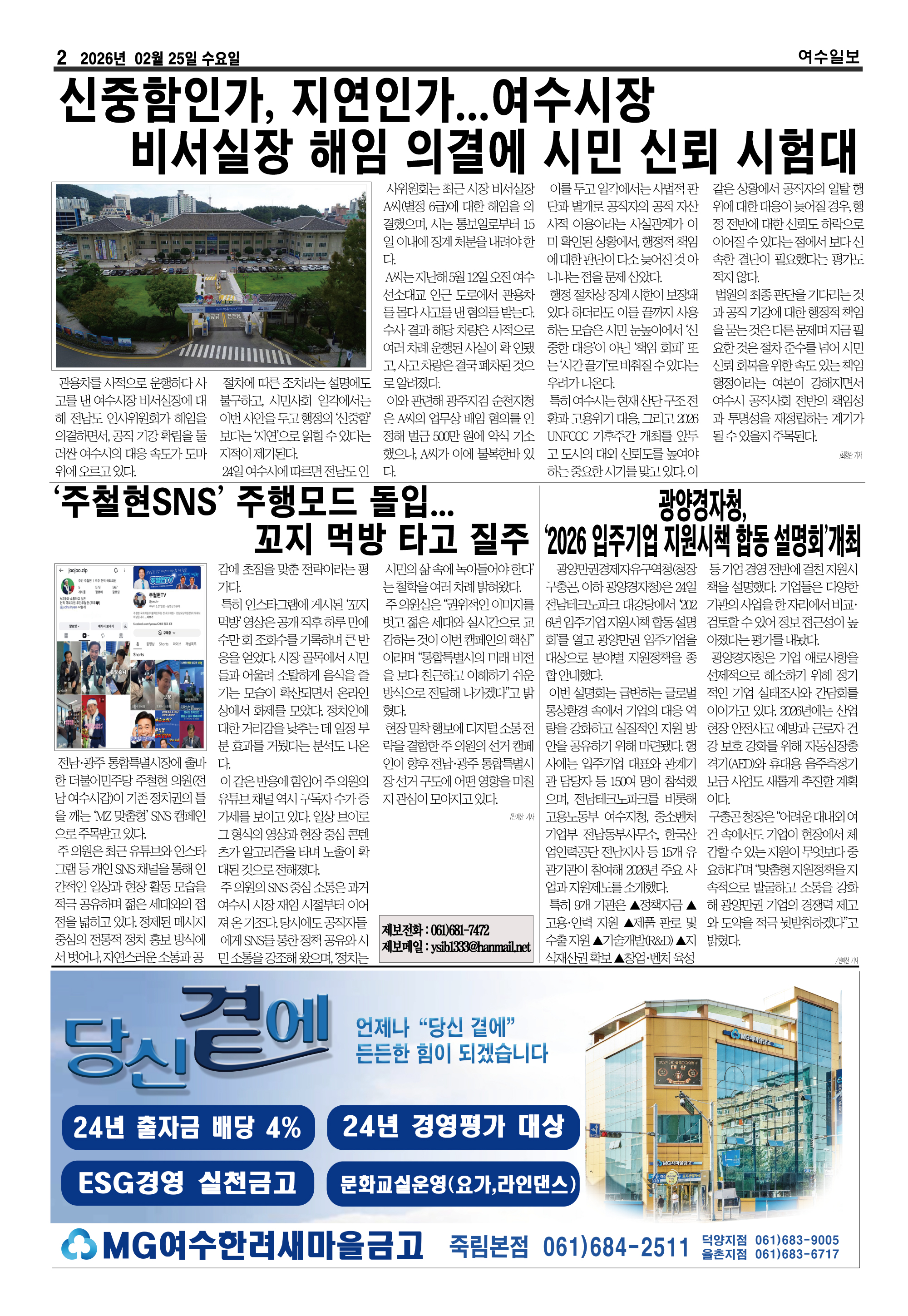 | 신중함인가, 지연인가... 여수시장 비서실장 해임 의결에 시민 신뢰 시험대 (0) | 2026.02.25 |