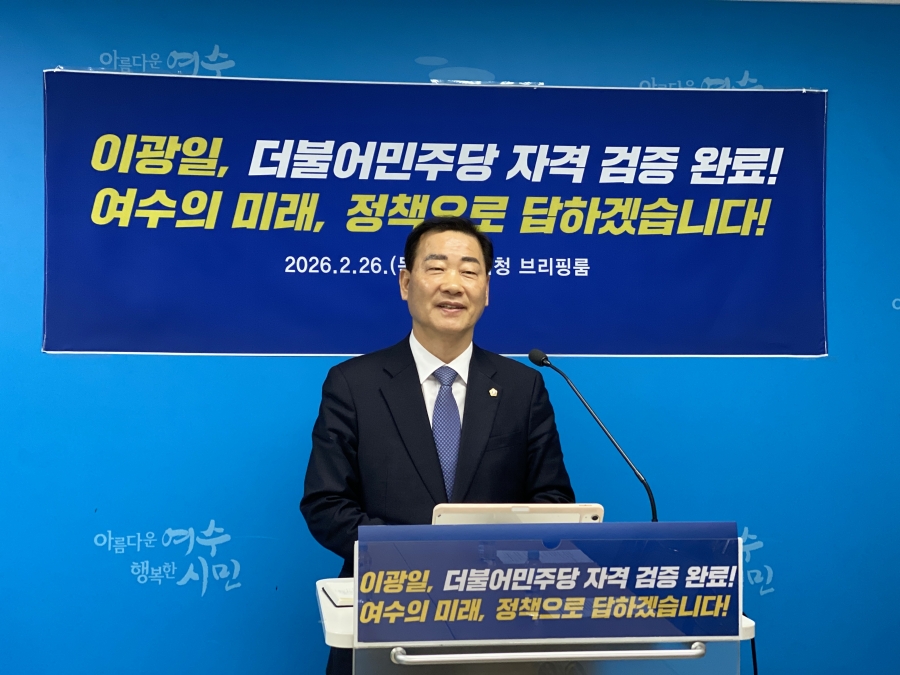 이 부의장은 26일 여수시청 브리핑룸에서 기자회견을 열고 “엄격한 정밀 심사를 거쳐 자격 검증을 공식적으로 마쳤다”며 “이제는 정책과 비전으로 평가받겠다”고 밝혔다. 정밀심사 대상에 포함됐다는 이유로 ‘부적격’ 소문이 확산된 데 대해서는 “정밀대상과 부적격은 전혀 다른 개념”이라며 선을 그었다.